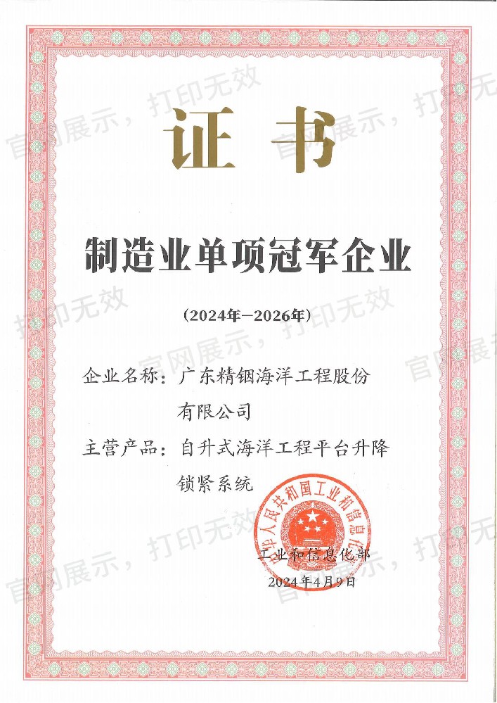 制造業(yè)單項(xiàng)冠軍示范企業(yè)