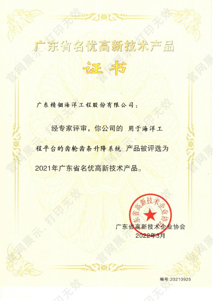 廣東省名優(yōu)高新技術(shù)產(chǎn)品證書